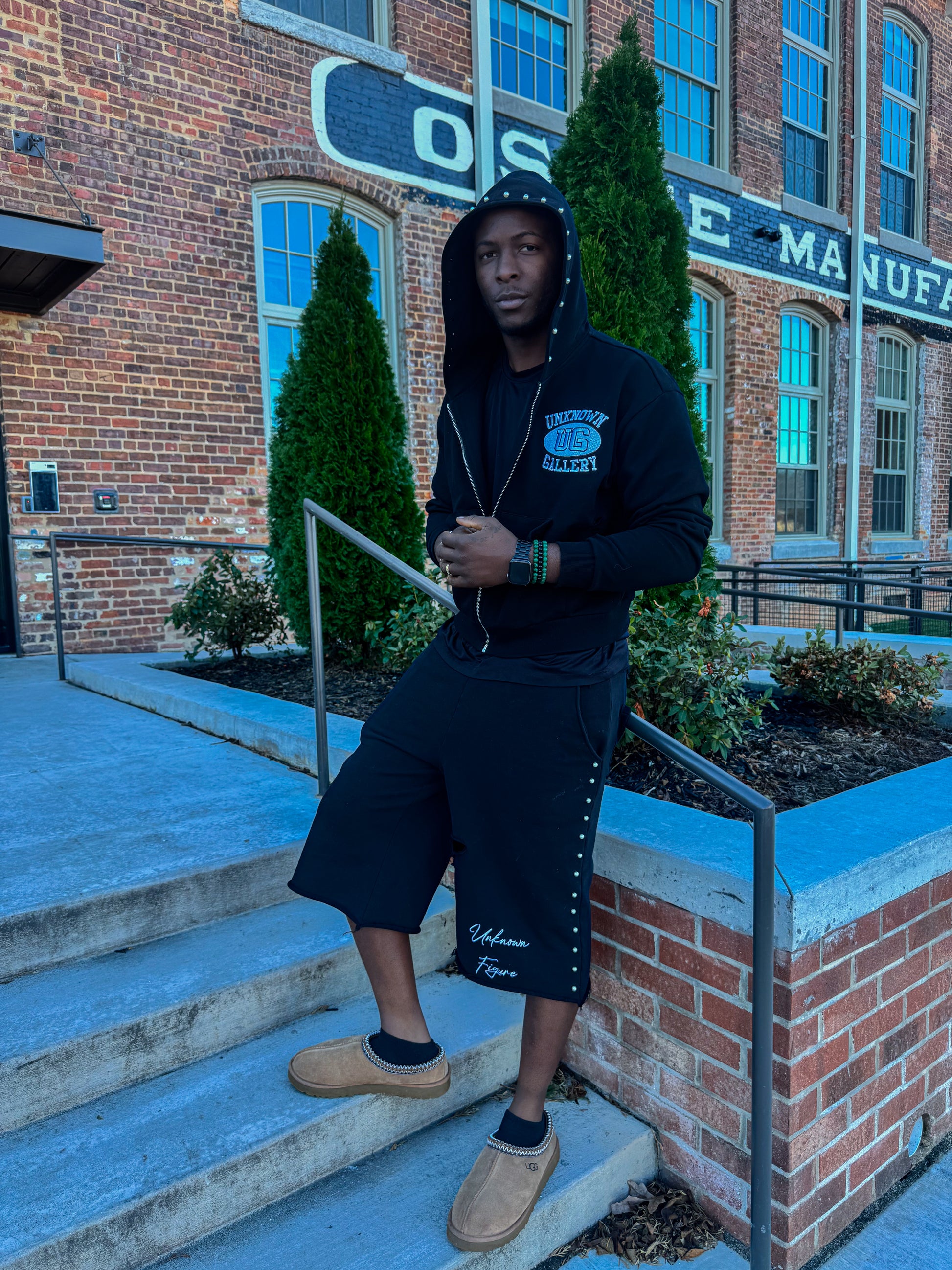 "Unknown Figure" embroidery on the front left and back left